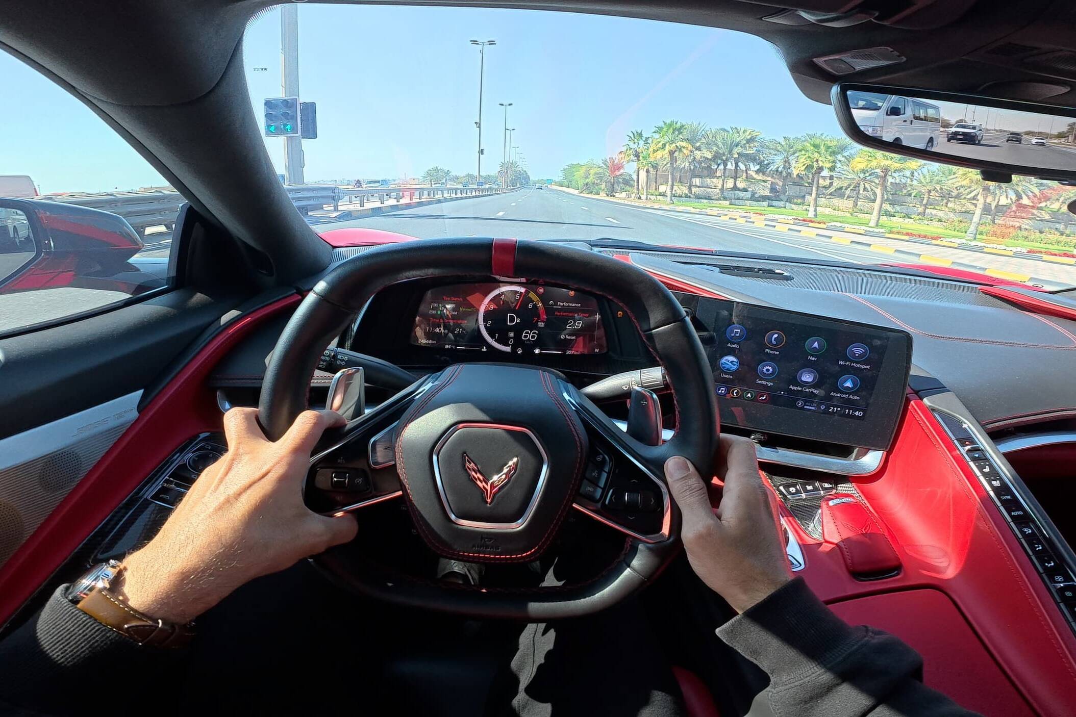 The car I drove was a Corvette C8 Stingray equipped with the Z51 package, and this is where the Corvette’s new personality truly shows. As I settled into the driver’s seat, the tactile feedback from the steering wheel was immediate, almost like an invitation to explore its capabilities.  Pressing the start button triggered a low rumble from the V8, enveloping the cabin. The first shift brought with it a satisfying click; each gear change echoed through the precise mechanism beneath my fingertips, providing a tangible connection to the car’s inner workings.